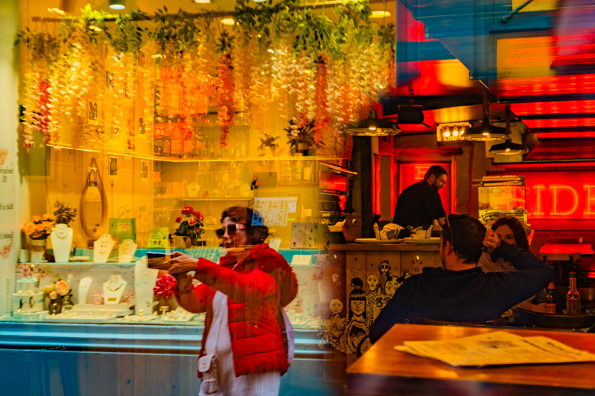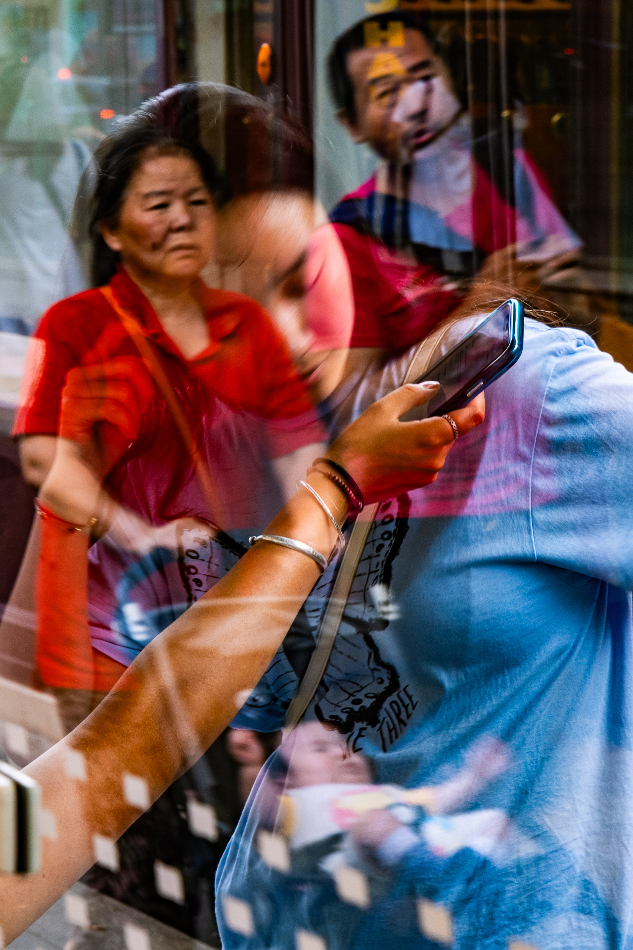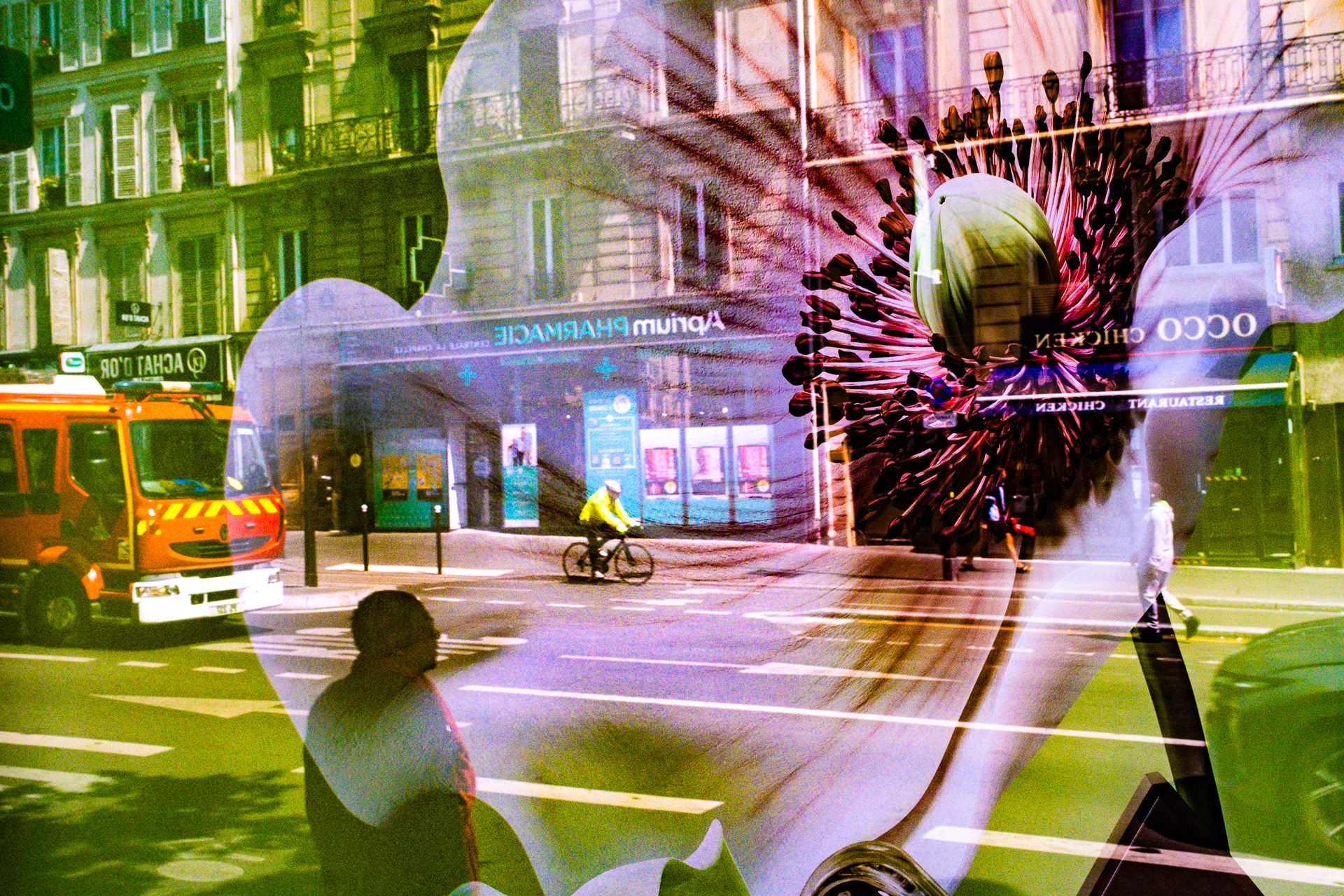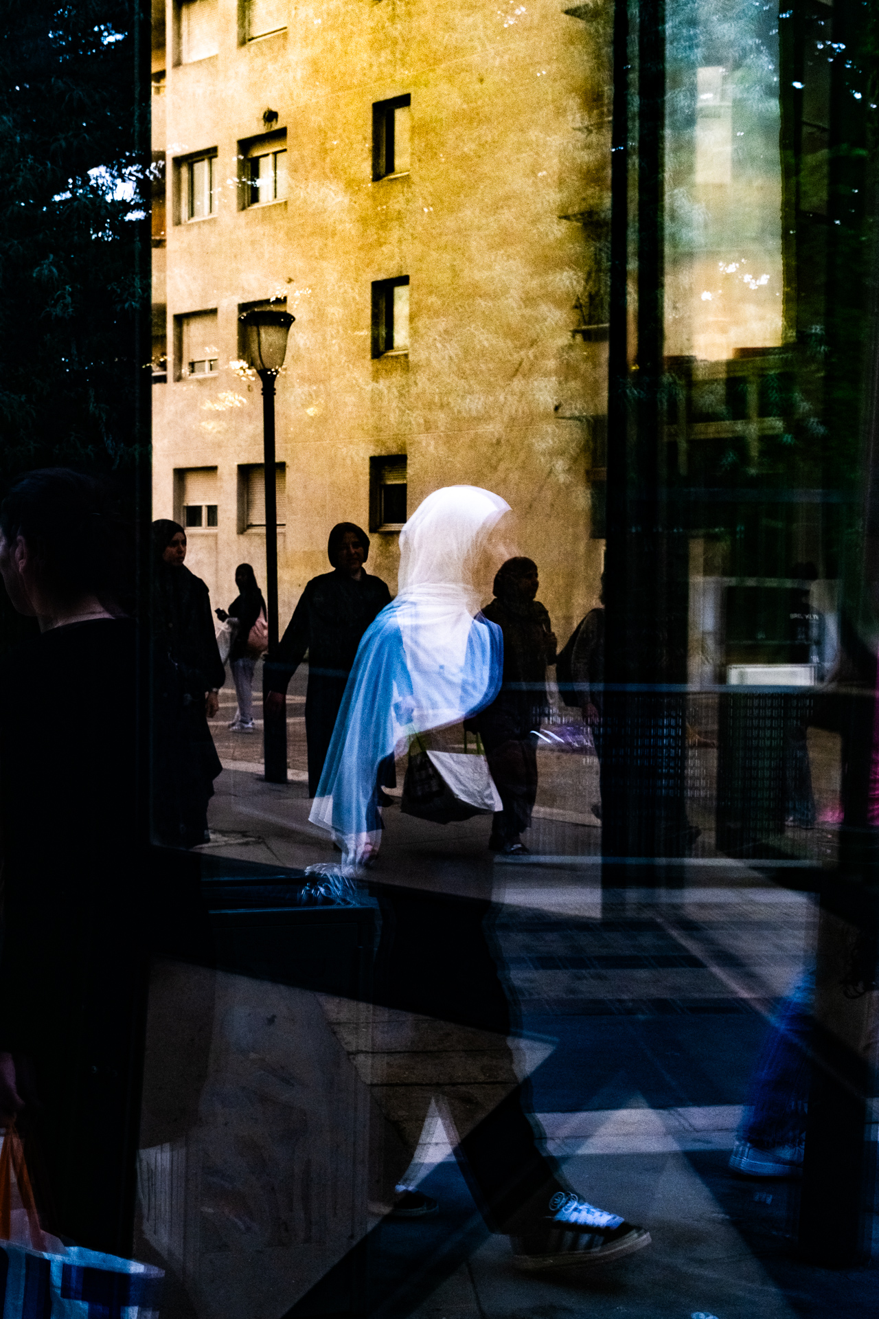 Mon enfance polonaise a été marquée par une culture qui prône l’absurde et l’irrationnel, sublimant la beauté et la profondeur du déraisonnable et de l’extravagant, tant dans le fond que dans la forme. Ces questionnements se retrouvent dans les arts dramatiques, les arts visuels ou la prose, atteignant leur apogée au début du XXème siècle avec le mouvement de la Jeune Pologne, explorant les voies du symbolisme, de l’existentialisme et de l’expressionnisme. C’est dans cette réalité déformée, parfois plus réelle que la réalité elle-même, et dans ses connexions étonnantes que je me suis toujours sentie chez moi. La série photographique « Lost in the Multiverse » en est le fruit. Cette série vise à étudier et explorer les propriétés de la lumière et des reflets. Les photos sont prises à travers des surfaces translucides, qui rassemblent deux espaces qui ne peuvent pas être vus en même temps – l’espace devant l’objectif et l’espace qui échappe à celui-ci, mais qui est mis en avant grâce au reflet. Selon l’intensité et l’angle de la lumière dans ces deux espaces, l’un ou l’autre devient plus ou moins visible sur l’image finale. La lumière, et donc le reflet qui se forme sur la surface réfléchissante, peut souvent être partiellement obstruée par des éléments extérieurs (un lampadaire, une poubelle, une personne…), créant ainsi des « trous » dans le reflet et permettant un mélange encore plus poussé entre l’intérieur et l’extérieur. Il en va de même pour les miroirs qui y sont présents, qui peuvent ajouter une seconde réflexion à une image déjà composite. Les éléments se mélangent et créent une illusion de quelque chose qui aurait pu être, un moment fugace, un nouveau territoire, un nouvel univers.